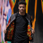 African Print Bomber Jacket Khama Lined – Bronze outer shell with African print lining. Designed, hand cut and tailored in London.