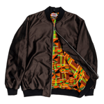 The African print Khama (Akan: nwentoma; Ewe: Kete) is a Ghanian textile which would have been traditionally a handwoven cloth worn to commemorate special occasions. The African Bomber Jacket Khama Lined proudly displays this print as the lining.